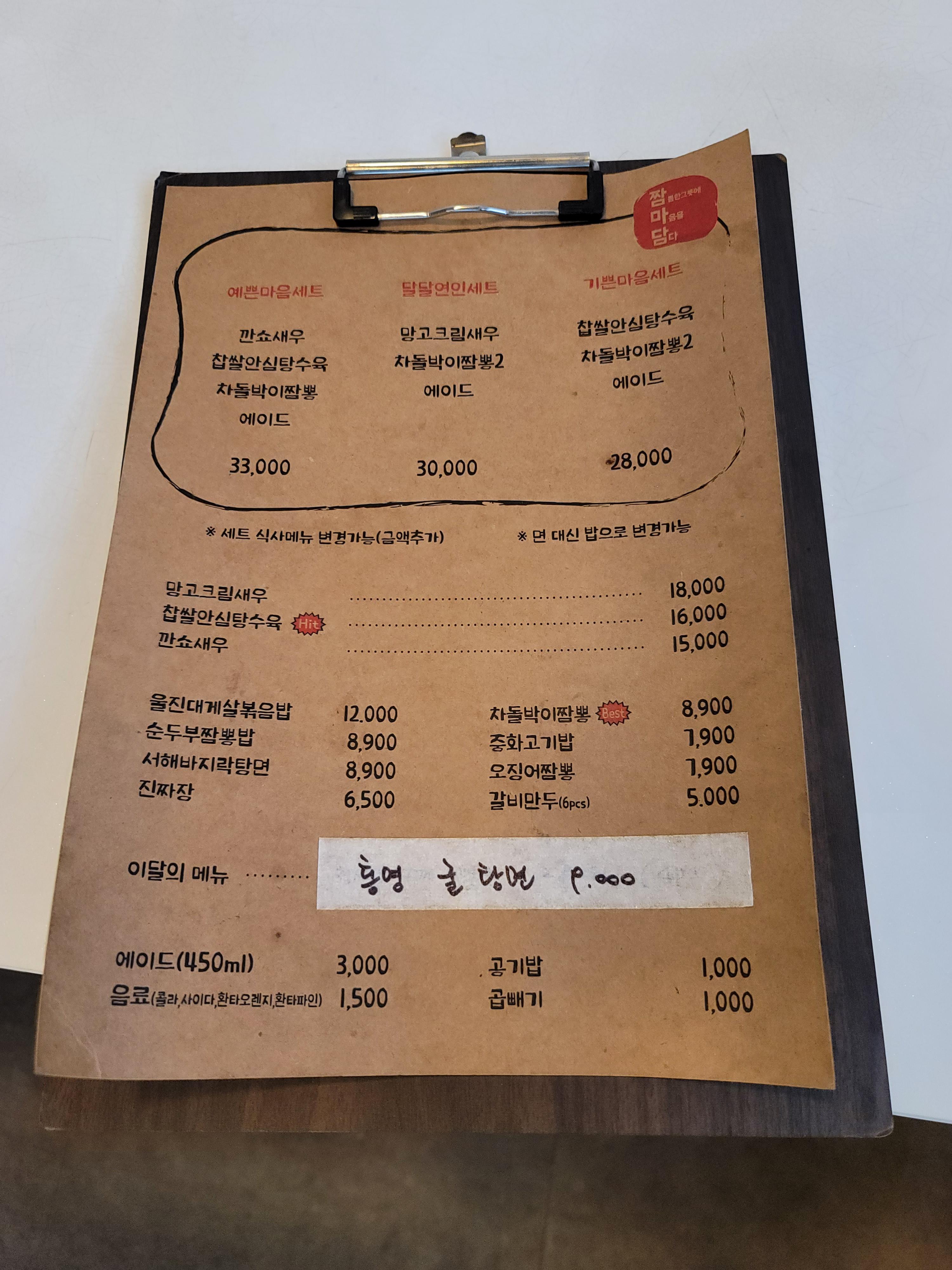 친구 일을 좀 도와주고 대접 받은 통영굴탕면. 둘이 만나면 보통 짜장면, 마라탕, 국밥 같은걸 먹곤 했는데 이번엔 좀 색다른걸 먹자고 고르다가 차돌박이짬뽕이 생각나서 가게 된 짬마담. 갈 땐 #차돌박이짬뽕 이 목적이었는데...